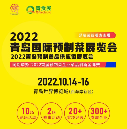 我国预制与调理食品发展从速冻米面到预制菜肴,产品品类开发呈现多元化趋势。为推动预制菜全产业链高质量发展,为建设健康中国、美食强国做出更大贡献。由青岛展驰国际会展有限公司承办的2022青岛国际消费品博览会一青岛预制菜展将于2022年10月14日一 16日在青岛世界博览城举办。